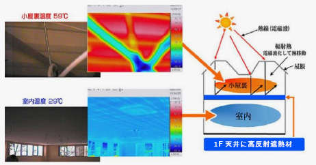 こうして、熱線及び輻射熱をカットする、高反射遮熱材工法は夏涼しく冬暖かい快適空間を求めて働き続けるのです。